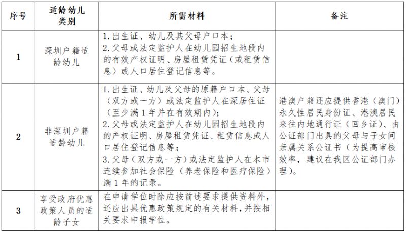 非深圳户籍适龄幼儿报读公办幼儿园应提供父母或法定监护人至少一方的深圳社保卡或社保参保证明,并在报名截止日前已在深圳连续参加社会保险(养老保险和医疗保险同时缴交)满1年。
